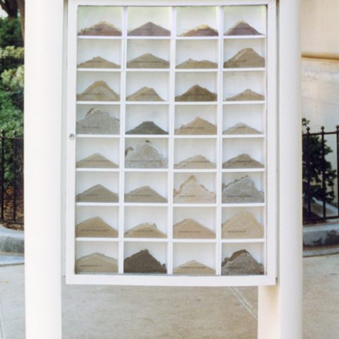 Die Installation 'Erdverschiebungen' wurde 1998 im Rahmen der Ausstellungsreihe 'Art in the Box' (Kurator: Reinhard Maiworm) im Goethe Institut New York gezeigt.