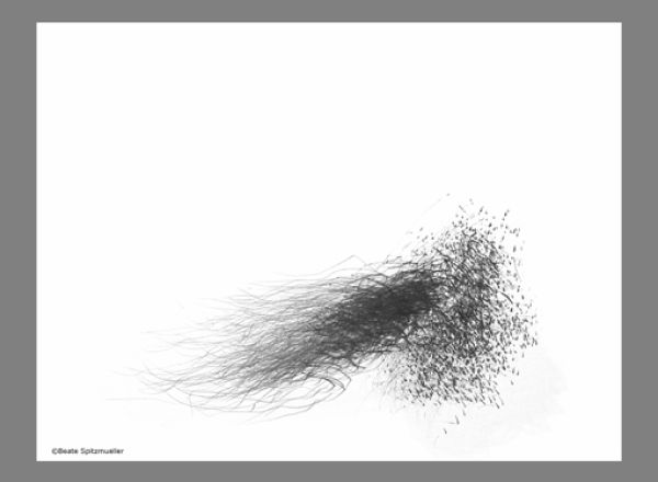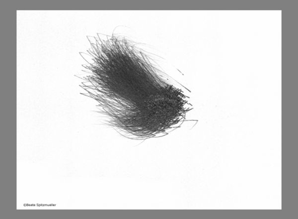 Seit 2006 entstehen Bleistiftzeichnungen, in denen Beate Spitzmüller Zeit und Prozess untersucht. Dabei spielt Rhythmisierung eine wichtige Rolle. Trotz gleichbleibender äußerer Bedingungen finden sich Veränderungen, die als dynamische Prozesse auf dem Papier sichtbar werden.