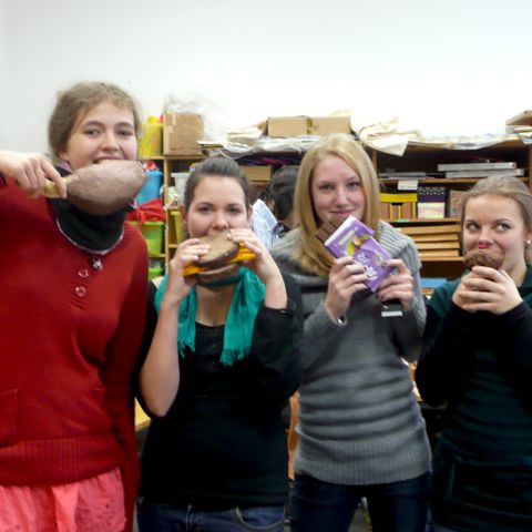 Using dialogues, photographic and pictorial representations, questions about eating culture were raised.