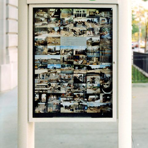 Erdproben und Fotografien von Berliner Baustellen. Installation im öffentichen Raum